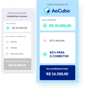Você indica um corretor. Ele se cadastra na Imobiliária AoCubo.